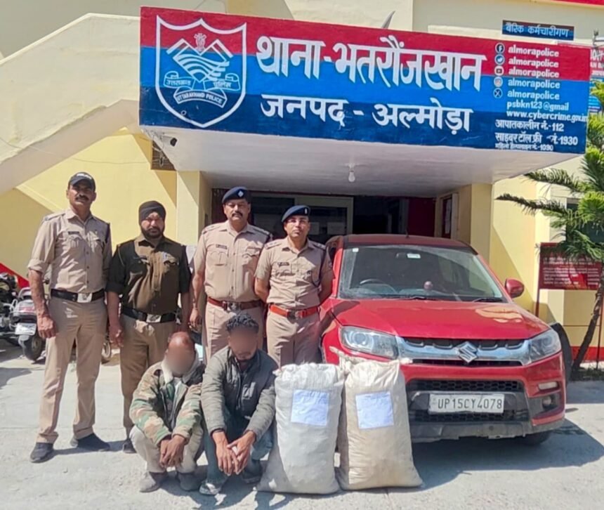 इसी क्रम में थानाध्यक्ष भतरौजखान सुशील कुमार के नेतृत्व में आज दिनांक 27.03.2025 की रात्रि भतरौजखान पुलिस टीम द्वारा चौड़ीघट्टी तिराहे पर चेकिंग के दौरान ब्रिजा कार संख्या- UP15-CY-4078 को चैक किया गया तो चालक राजेन्द्र सिंह व उसका साथी गौरव सैनी के कब्जे से 43.580 किलोग्राम अवैध गांजा बरामद होने पर गिरफ्तार करते हुए, थाना भतरौजखान में अभियुक्त के विरुद्ध एनडीपीएस एक्ट के अन्तर्गत एफ0आई0आर0 पंजीकृत कर वैधानिक कार्यवाही की गई है।