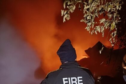 फायर स्टेशन रानीखेत के जवानों की कड़ी मेहनत से कबाड़ के गोदाम में लगी भीषण आग पर पाया काबू